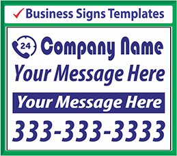 18″ x 12″, 24″ x 9″, 24″ x 12″, 24″ x 18″, 24″ x 24″, 24″ x 36″, 48″ x 48″ and 96″ x 48″. You also have the option to select from our variety of templates and will find our website very easy and quick to use for ordering your signs.
